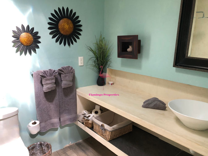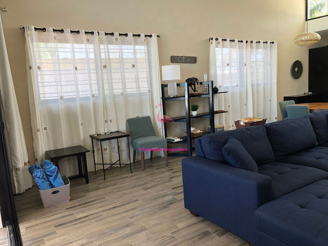 This beautiful home features a stunning beachfront pool and terrace. The house has a very functional and well thought-out layout. The spectacular ocean view will catch your eye right from the moment you open the front door. The soaring ceiling in the main living/dining area gives a light and airy feeling to the space and the front windows make the outside and inside become one. The kitchen is functional and efficient and there is a full bathroom easily accessible to the main living area. There is also an abundance of closet space in the adjacent hallway.